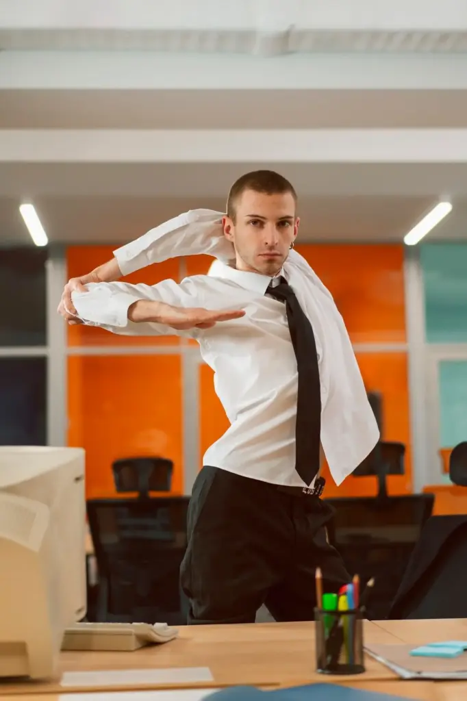 Setze Hände auf Knie, beim Einatmen hebst du sanft das Brustbein, Blick leicht anheben, Lenden neutral. Beim Ausatmen runde den Rücken, als würdest du zwischen Schulterblättern Raum schaffen, Kinn sanft zur Brust. Acht bis zehn ruhige Wiederholungen, Atem führt Bewegung. Vermeide extremes Hohlkreuz oder Pressatmung. Spüre anschließend Wärme entlang der Wirbelsäule und eine angenehmere Sitzhaltung.